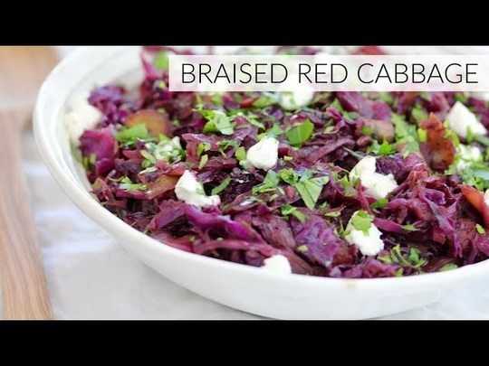 Braised red cabbage is sweet, sour, tender and buttery. It's an easy healthy side dish to serve alongside side roasted chicken or fish. I first tasted braised red cabbage at Houston's restaurant and have