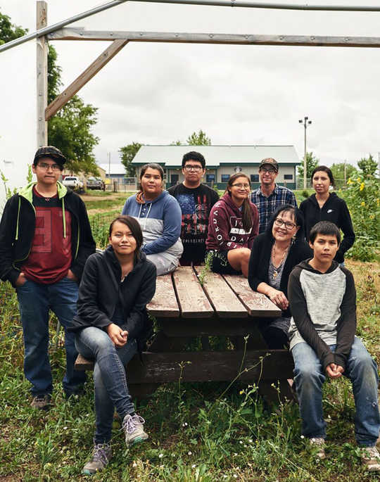 Teens take part in the Cheyenne River Youth Project’s Native Food Sovereignty Internships in 2017. Julie Garreau, the youth project’s director, is seen third from the right. Photo from the Cheyenne River Youth Project.